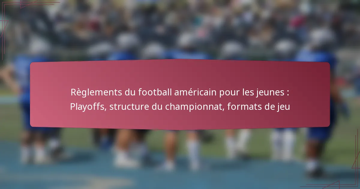 Les formats de championnat dans le football américain pour les jeunes incluent généralement des playoffs à élimination simple, des tournois en round-robin et des championnats de ligue. Chaque format a son propre ensemble de règles et de critères de progression.