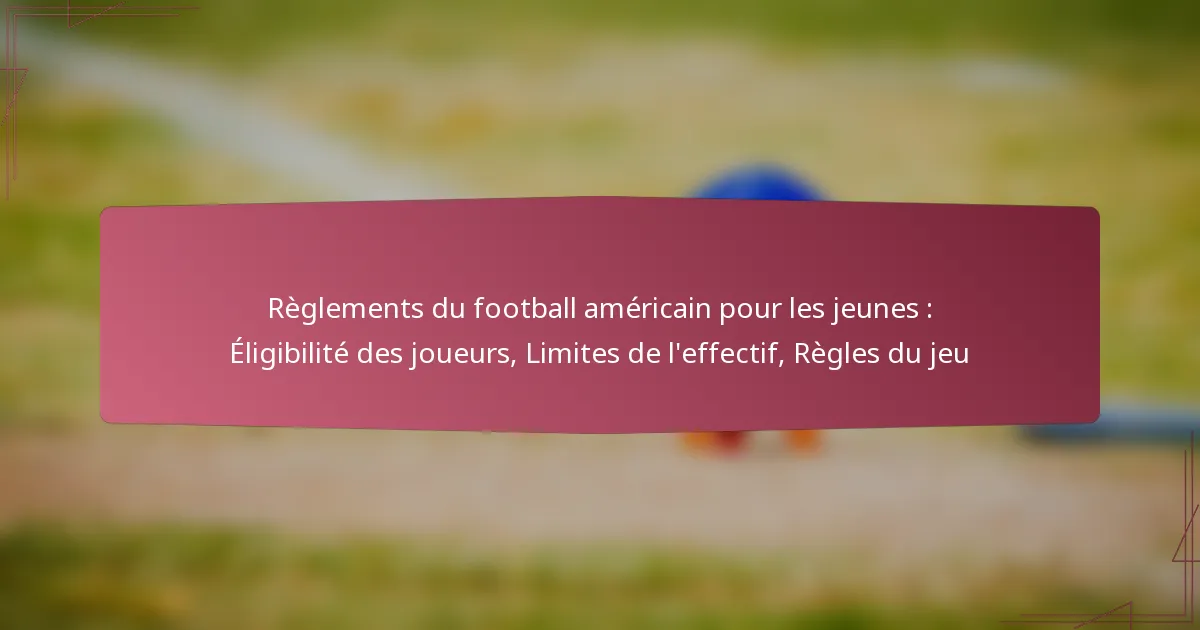 Les règlements du football américain pour les jeunes établissent des lignes directrices essentielles pour la composition des équipes, la durée des matchs et le système de points, garantissant un environnement sûr et équitable pour les jeunes athlètes. Les règles d’équipe varient selon les groupes d’âge et les ligues, tandis que les matchs durent généralement entre une et deux heures, structurés autour de quarts ou de mi-temps. Le score est basé sur des jeux spécifiques, avec des valeurs de points désignées pour les touchdowns et les field goals, ce qui rend important pour tous les participants de comprendre ces dynamiques pour un jeu efficace.