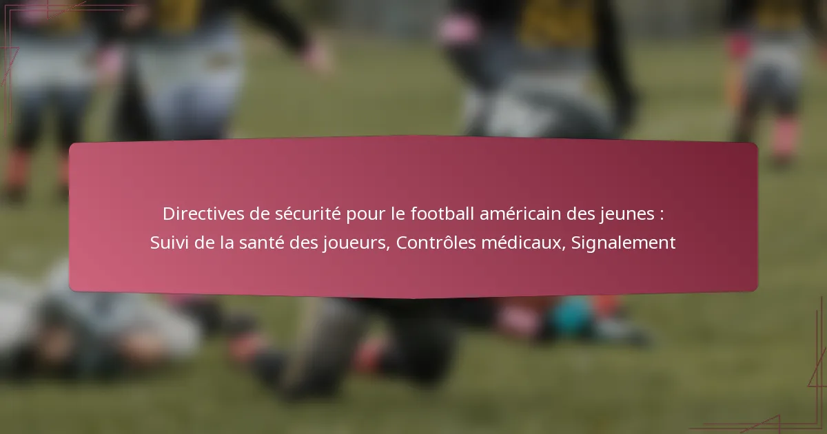 Les principales directives de sécurité pour le football américain des jeunes se concentrent sur la gestion des risques, la prévention des blessures et les procédures de signalement appropriées. Ces directives sont essentielles pour garantir le bien-être des jeunes athlètes tout en favorisant un environnement sûr et agréable pour la participation.